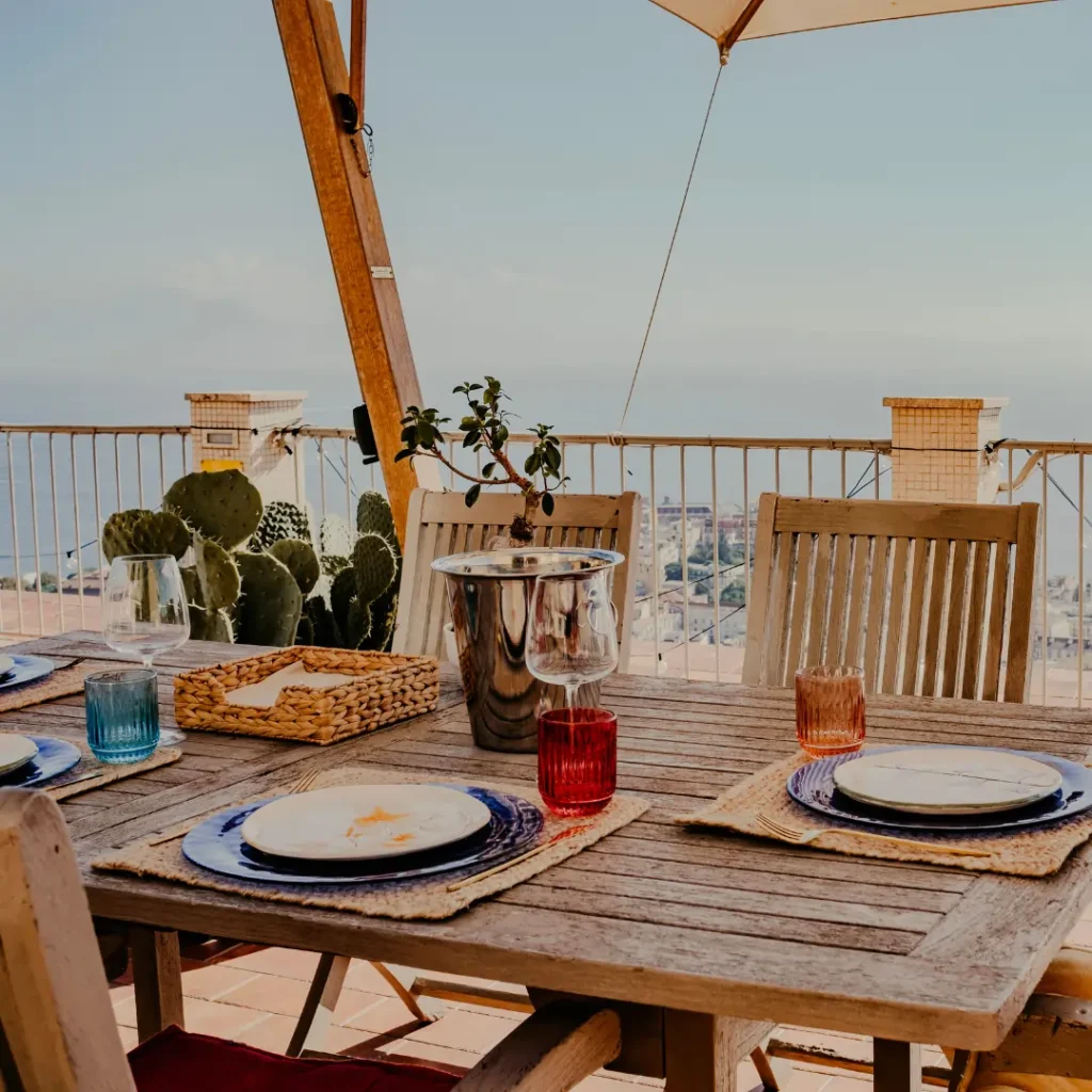Una terrazza esclusiva sospesa tra cielo e città. Il sole che tramonta, le luci che iniziano a illuminare il panorama, un tavolo riservato solo per voi: è la scena perfetta per una delle cene più suggestive e romantiche che si possano vivere, non credi?
