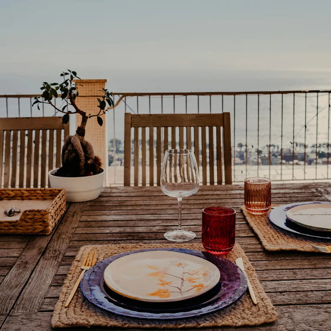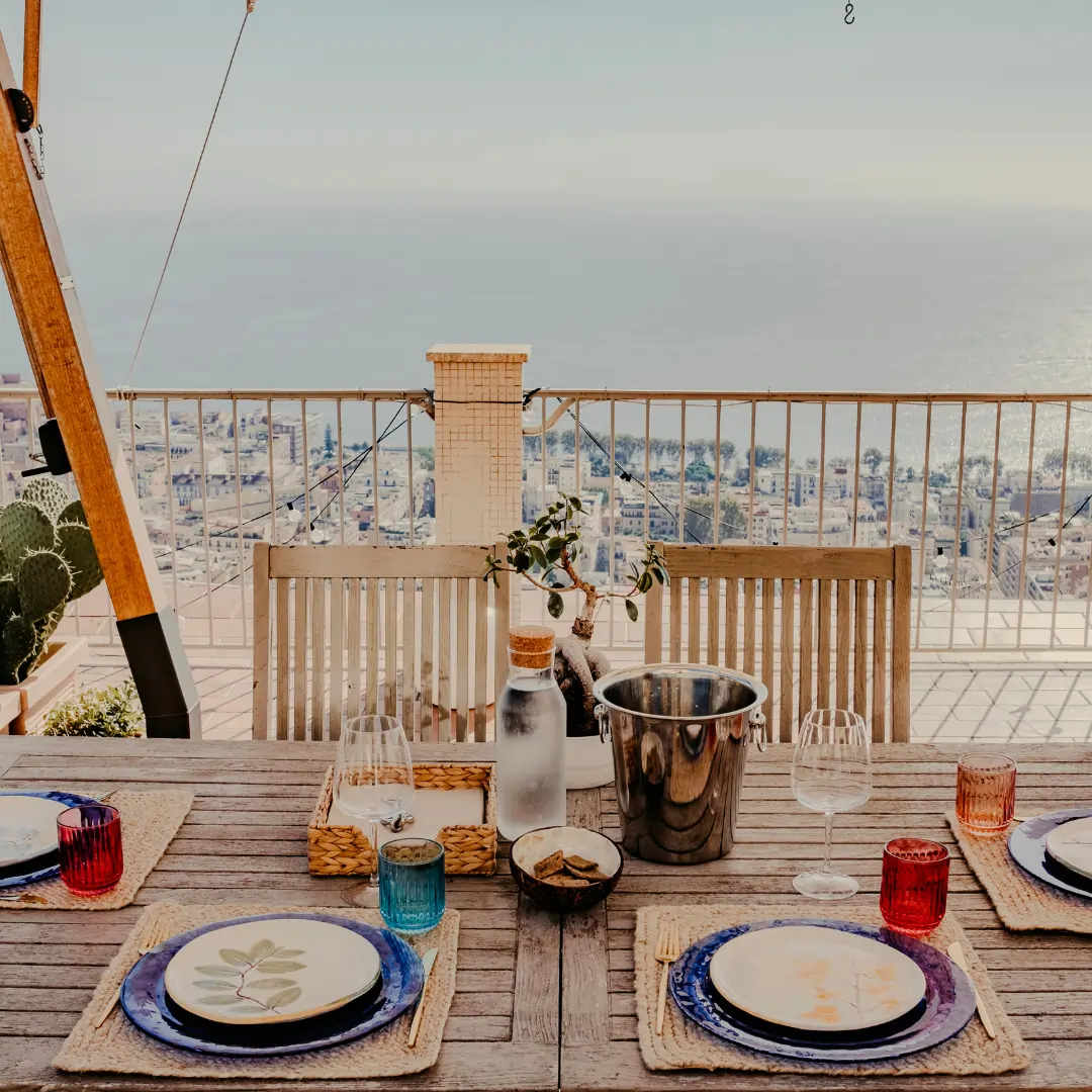 Una terrazza esclusiva sospesa tra cielo e città. Il sole che tramonta, le luci che iniziano a illuminare il panorama, un tavolo riservato solo per voi: è la scena perfetta per una delle cene più suggestive e romantiche che si possano vivere, non credi?