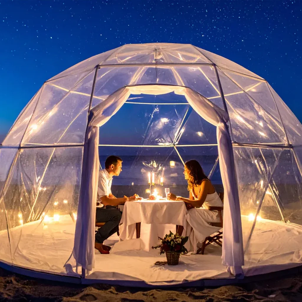 Dimentica il solito ristorante: vivi l’esperienza in una bubble panoramica, posizionata direttamente sulla sabbia a pochi passi dal mare, .