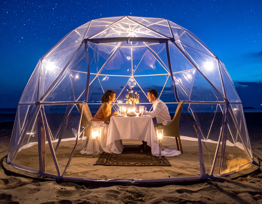 Dimentica il solito ristorante: vivi l’esperienza in una bubble panoramica, posizionata direttamente sulla sabbia a pochi passi dal mare, .